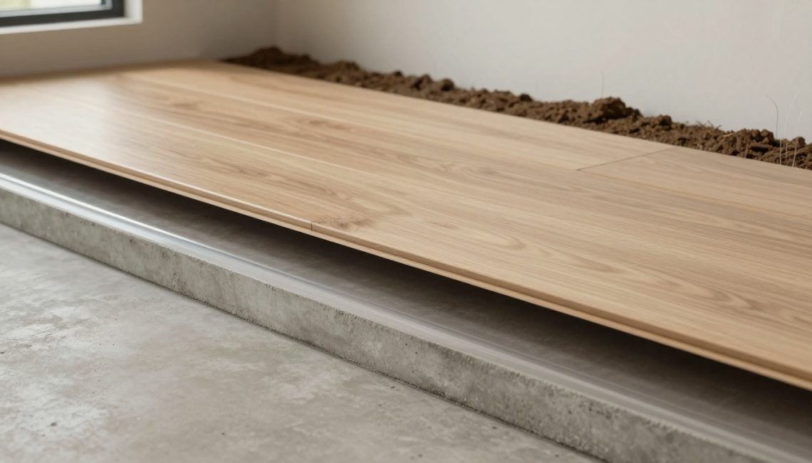 Dimple membrane or raised subfloor panelsCreates an air space above slabSlightly uneven slabs, comfort upgradesAdds height, watch doors and stairs